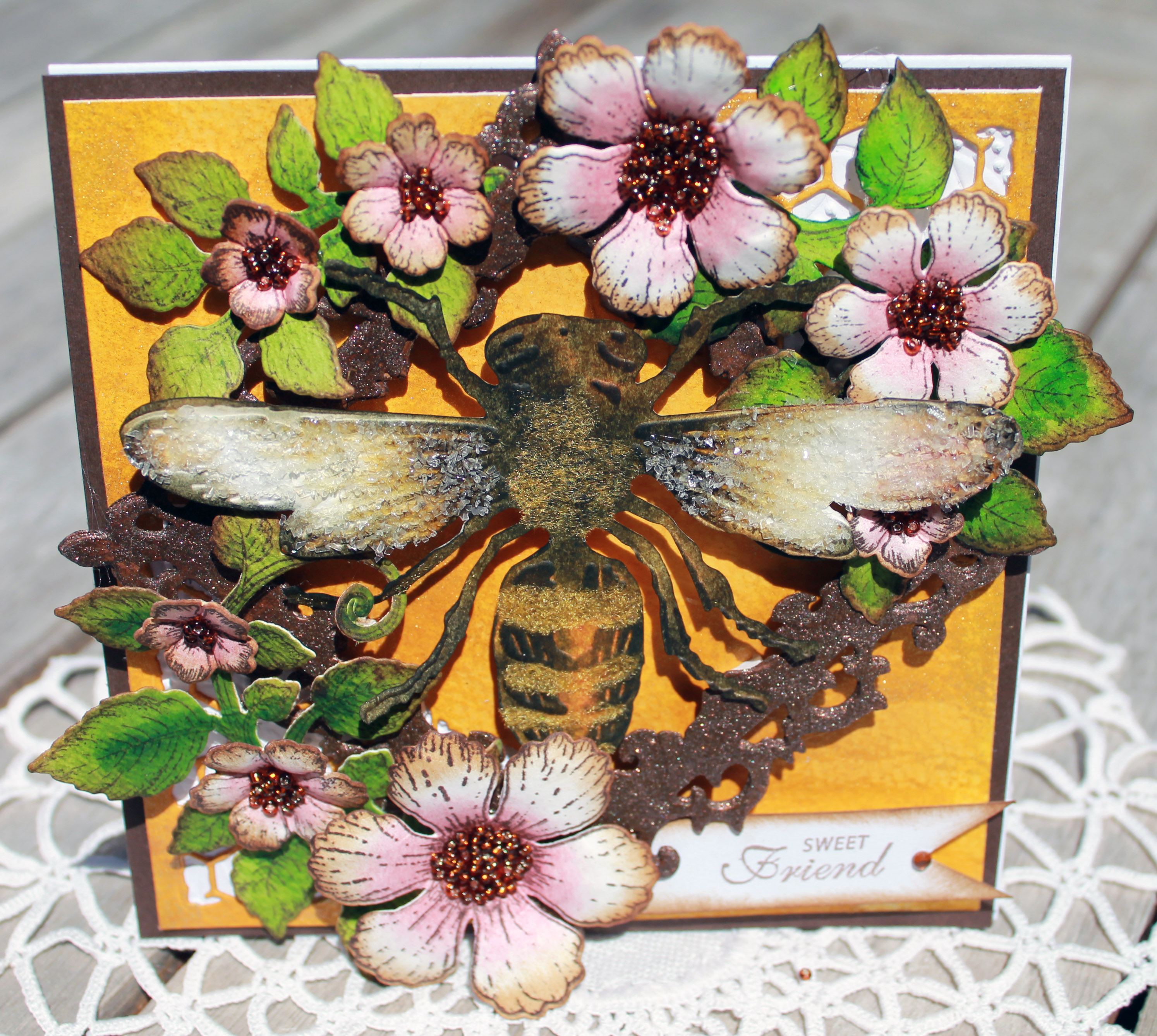 Here is a new favorite card I made this week, a friendship garden card. It’s a step card which makes it possible to add more details and depth than a regular flat 5 x7 or something. 🙂 Using a step card die from Cheery Lynn makes this step card a breeze to create! There is no more endless measuring and cutting and scoring as the die does it all for you. Of course I used botanical rose stamp and die from Heartfelt Creations, it’s my favorite flower die and stamp set. I love the little birdies that come with this set too! Supplies and directions are below! 🙂